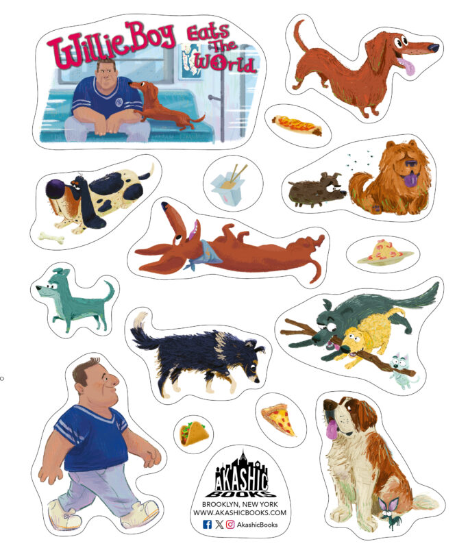 - A custom 8″ x 10″ sticker sheet featuring images of Steve, WillieBoy, and many of WillieBoy’s fictional canine friends!